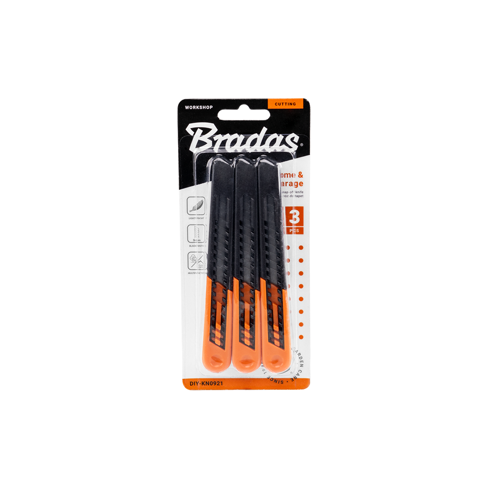 Bradas Abbrechklingenmesser – Tapetenmesser 9 mm – 3 Stück