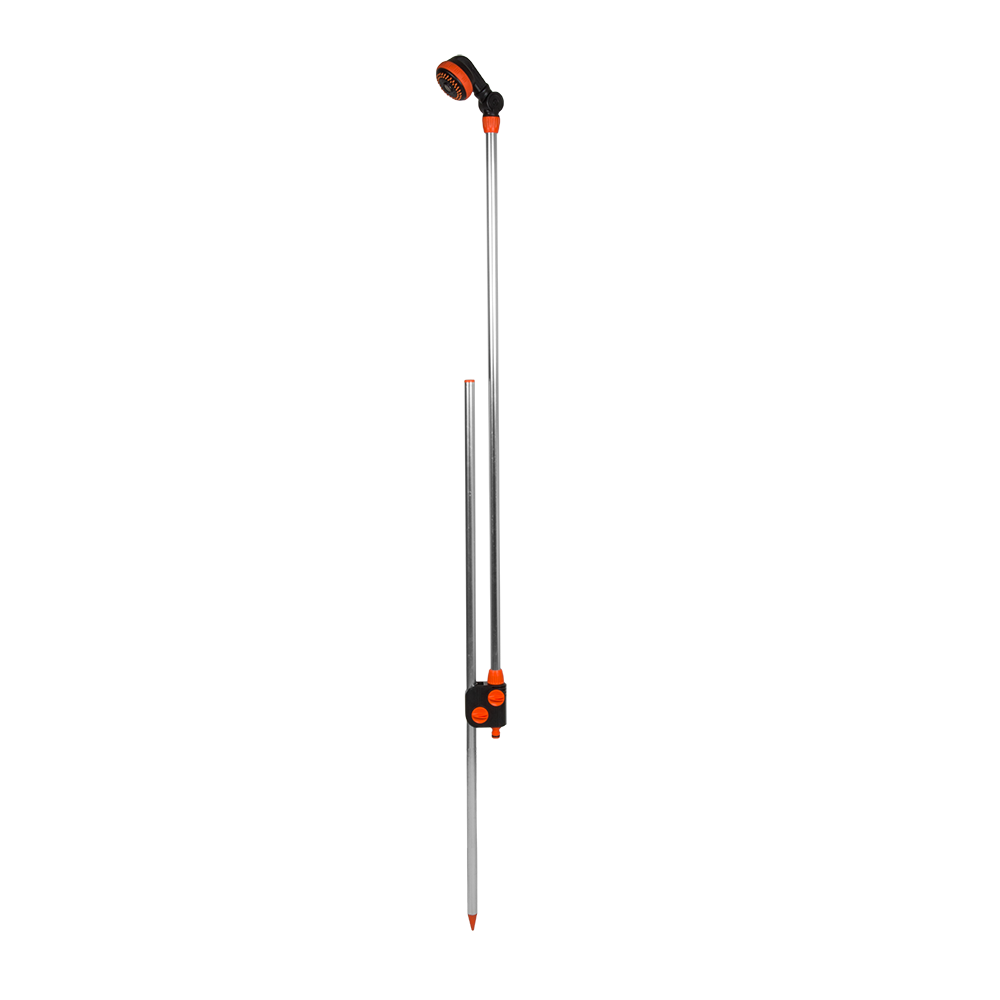 Diese Gartendusche ist mit einem stabilen Erdspieß ausgestattet, sodass Sie sie einfach in weichem oder unebenem Untergrund platzieren können. Die Höhe ist bis zu 160 cm verstellbar und dank des einstellbaren Sprühwinkels sowie des regulierbaren Wasserdurchflusses lässt sich die Dusche individuell an Ihre Bedürfnisse anpassen. Das leichte, aber dennoch widerstandsfähige Gestell aus Kunststoff und Aluminium macht sie einfach zu transportieren und wetterbeständig.