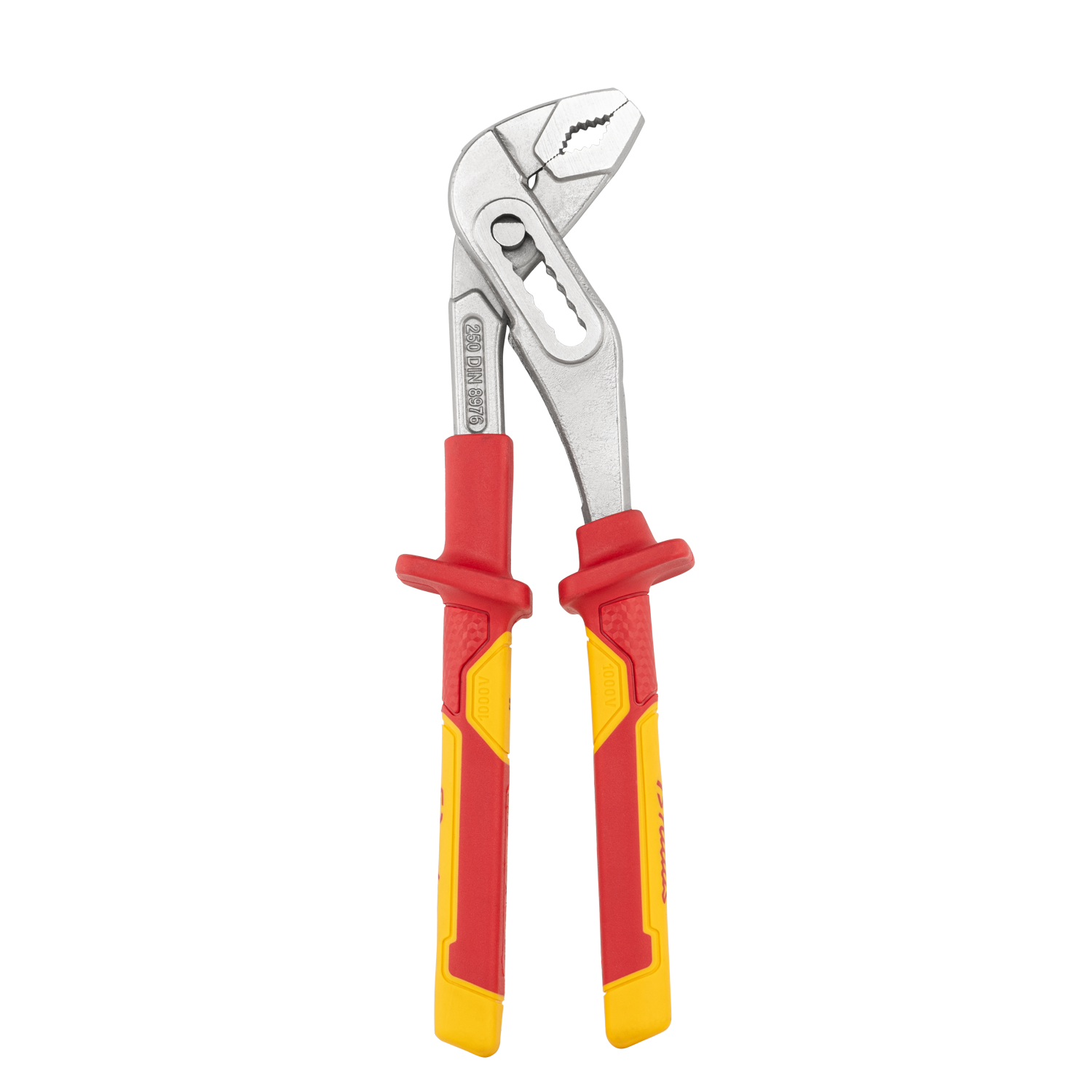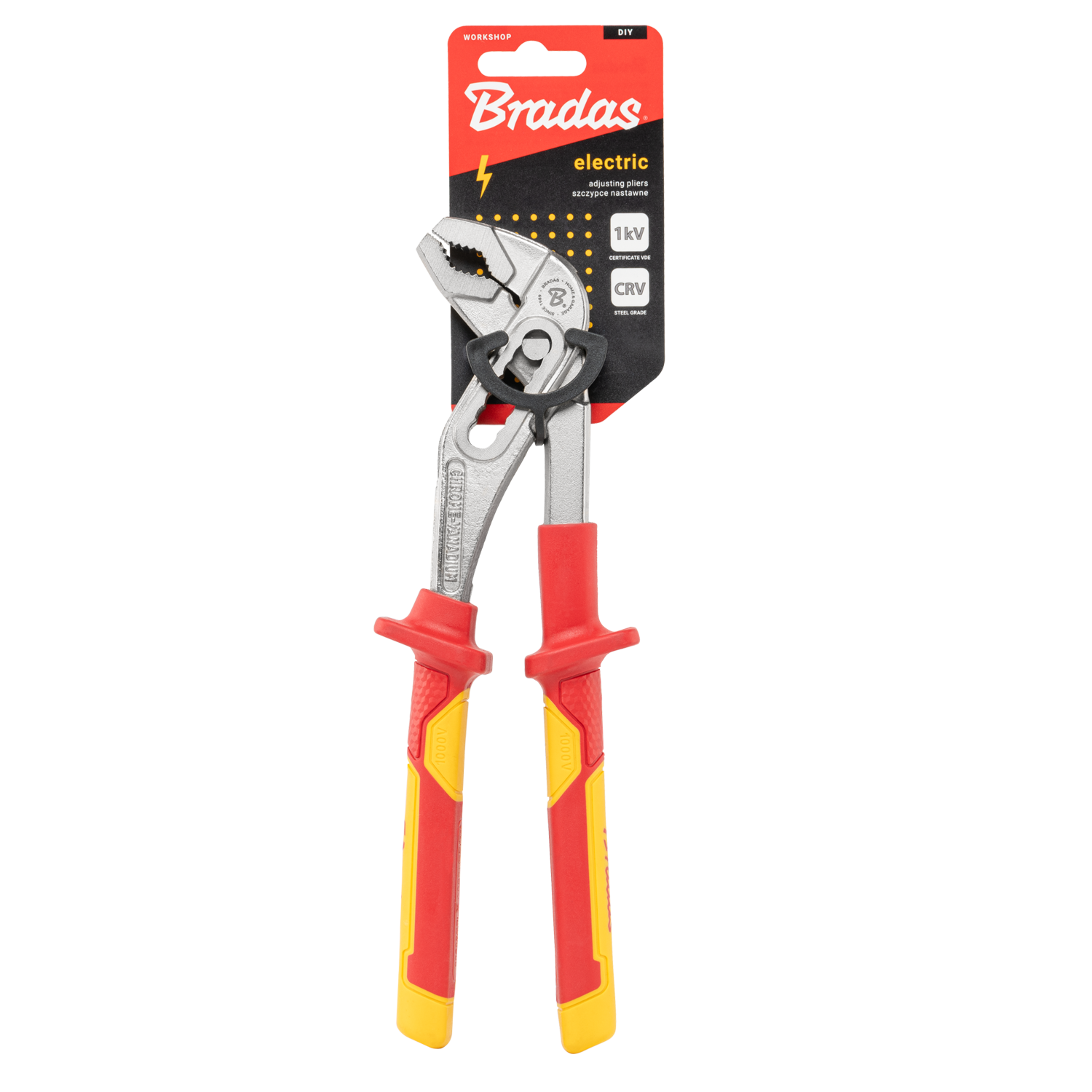 Die Bradas Wasserpumpenzange 250 mm 1kV VDE ist eine vielseitige und sichere Zange zum Greifen und Biegen von Materialien. Gefertigt aus hochwertigem Chrom-Vanadium-Stahl (CrV) und ausgestattet mit VDE-isolierten, rutschfesten Griffen bietet diese Zange optimale Kontrolle und Schutz bis 1000V. Dank der gezahnten Greiffläche halten Sie Muttern, Schrauben und Rohre sicher fest. Ideal für Montage-, Reparatur- und Hobbyarbeiten und entspricht der EN 60900-Norm.