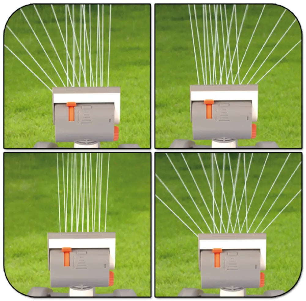 Der Sprenger verfügt über ein robustes Kunststoffgehäuse, das auch bei höherem Wasserdruck für Stabilität sorgt. Mit einer Wasserleistung von 12,4 l/min bei 3 bar garantiert dieser Turbo-Oszillationssprenger eine effiziente und gründliche Bewässerung – so bleiben Rasen und Pflanzen stets gesund und grün.