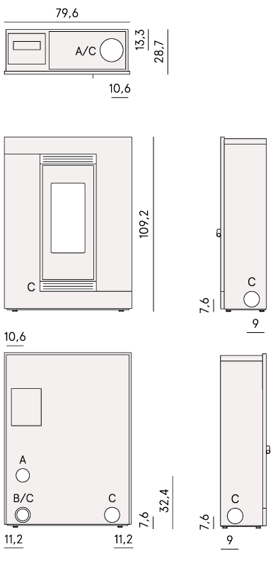 - Heizleistung: Max. 9,9 kW – Min. 3,3 kW
