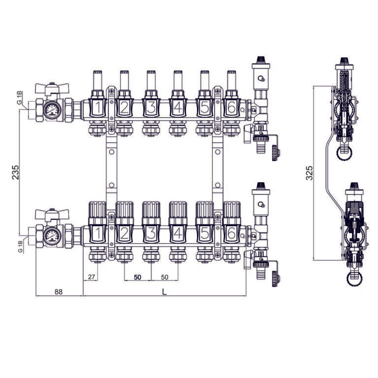 Diamond kompletter Fußbodenheizungsverteiler mit Absperrventilen – 8 Heizkreise