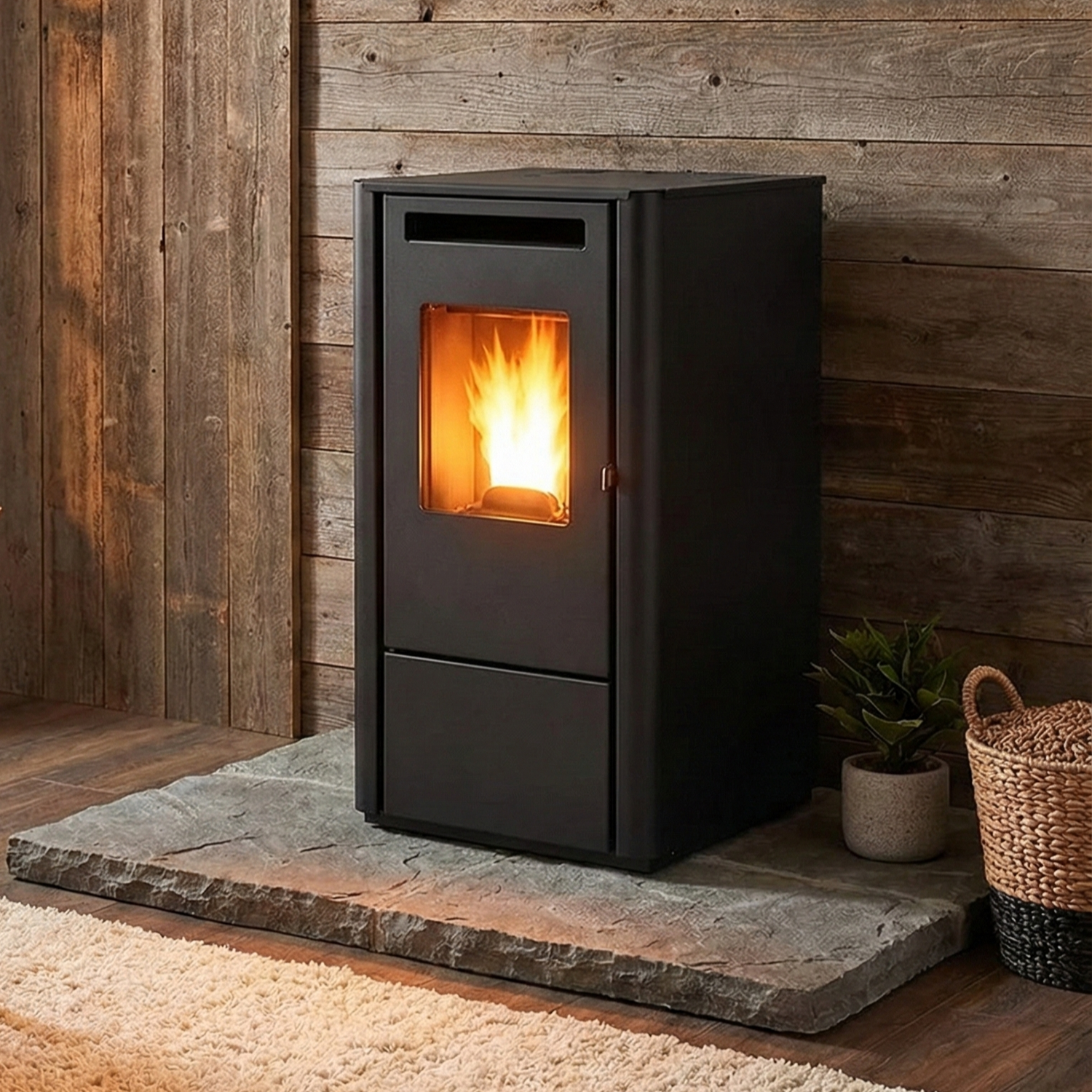 Ferretti Milano 9kW Pelletofen Schwarz - 90 m² ist auf Lager und wird versandt, sobald es wieder verfügbar ist
