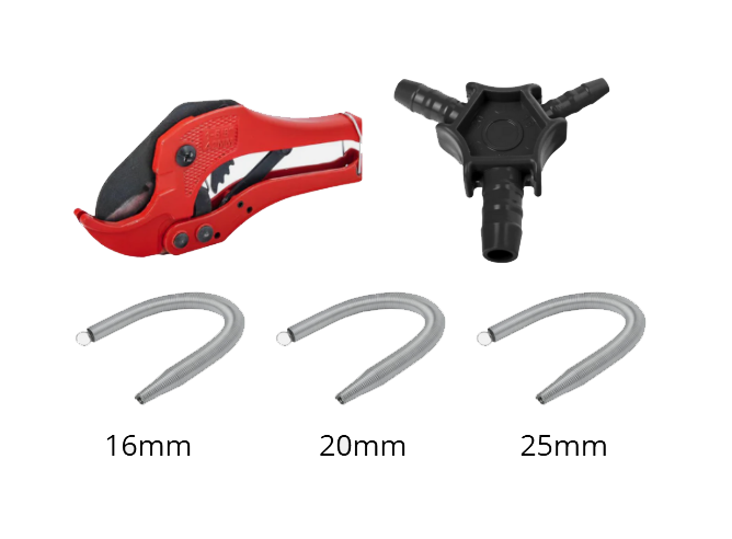 Komplettes PEX-Montageset für Rohre von 16 bis 32 mm – alles in einem Paket
